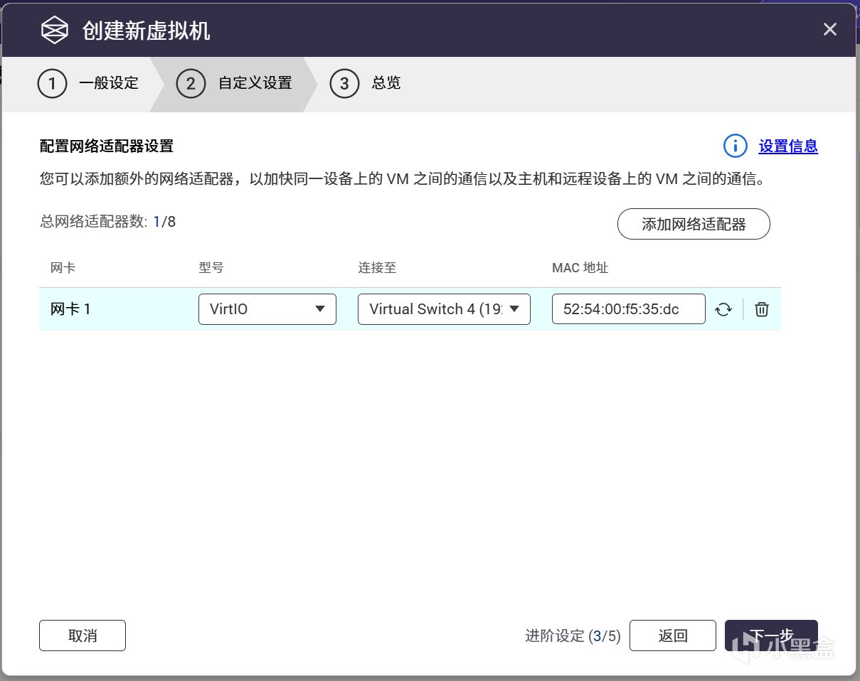 網卡設置按照默認的即可,點擊“下一步”按鈕。