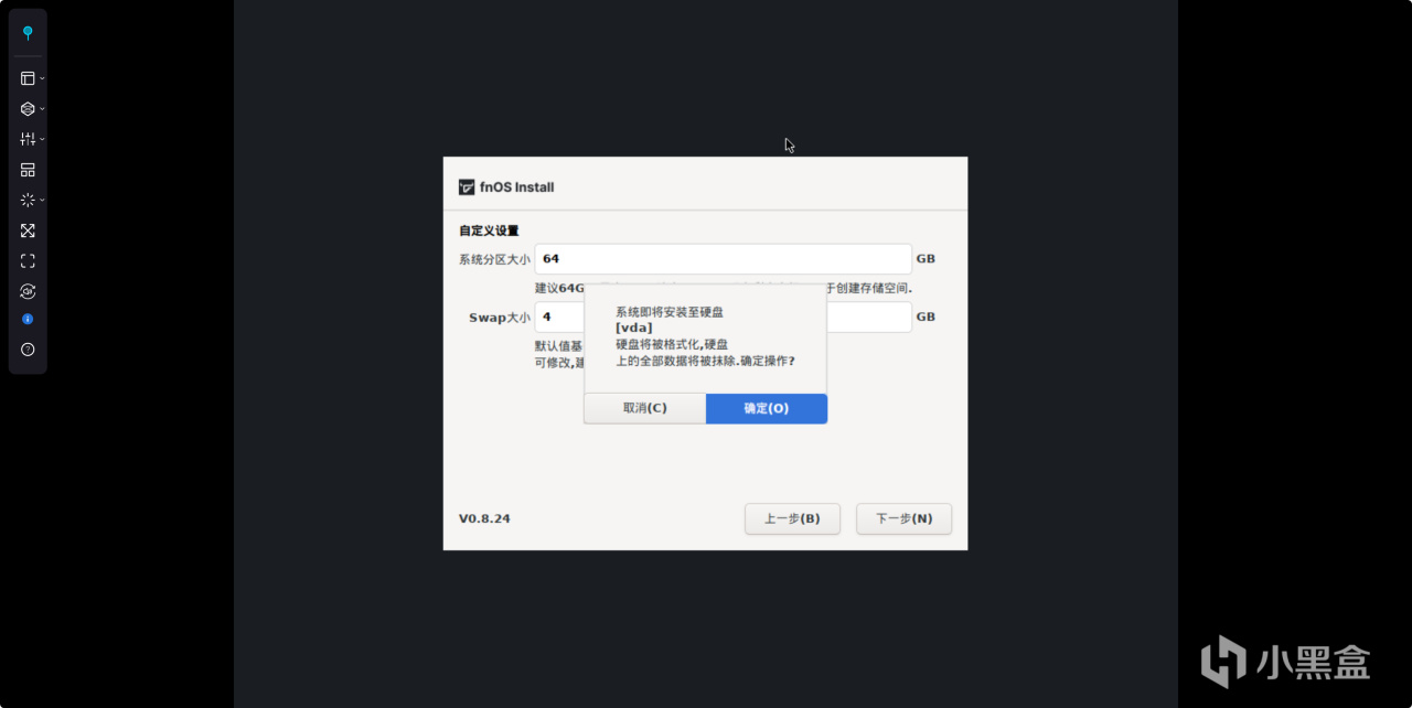 進行fnOS的初始化操作,點擊“確定”按鈕。