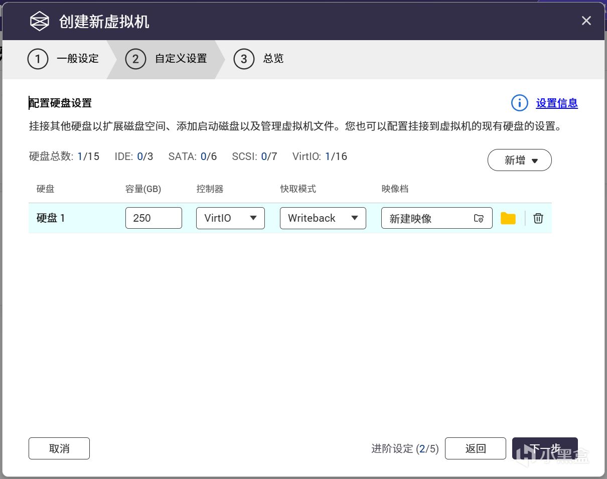 硬盤容量根據你的需求來設置,其他按照默認的即可,設置完成點擊“下一步”按鈕。