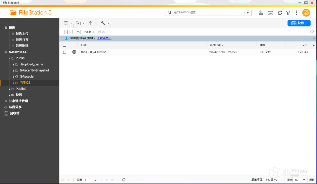然後在FileStation 5中創建一個專門用於存放虛擬機數據的文件夾,隨後將已下載的fnOS鏡像文件放置到該文件夾內。