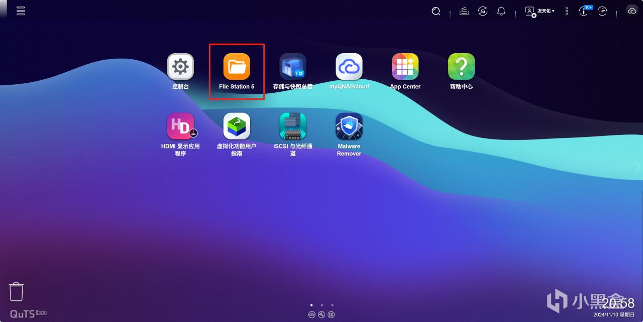 進入“QuTS Hero”系統後,點擊“FileStation 5”圖標,就能進入NAS文件總管了。