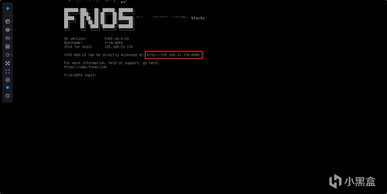 已經把飛牛OS系統裝到虛擬機裏了,別忘了記下內網飛牛OS的網址,之後就可以關閉虛擬機工作站的網頁界面了。