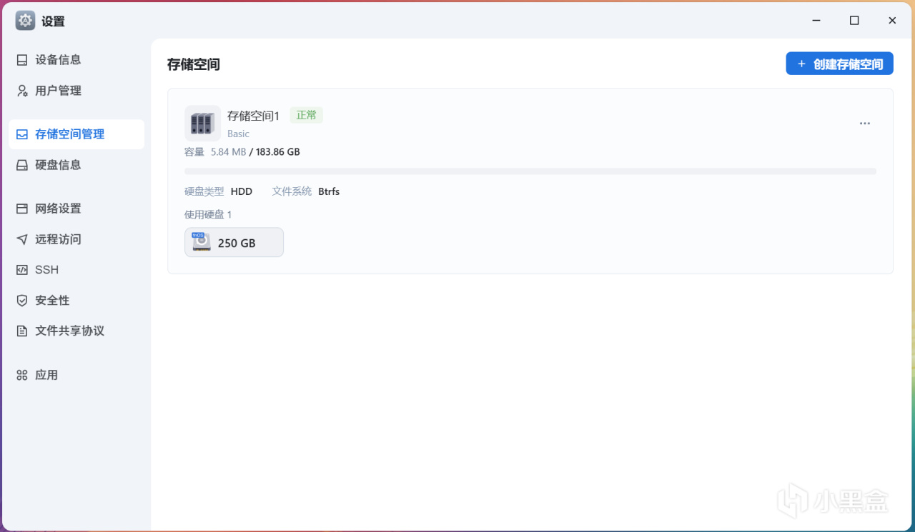 進入桌面後,首先會提示你創建存儲空間。點擊“立即創建”按鈕就可以了。