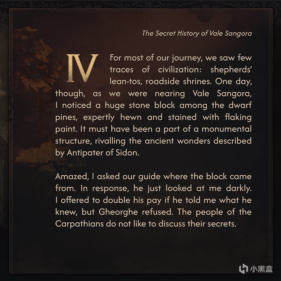 我驚訝地詢問嚮導這塊石頭的由來。他只是陰沉地看着我。我提出如果他告訴我他所知道的事情,就給他雙倍報酬,但Gheorghe拒絕了。Carpathians的人們不喜歡談論他們的祕密。