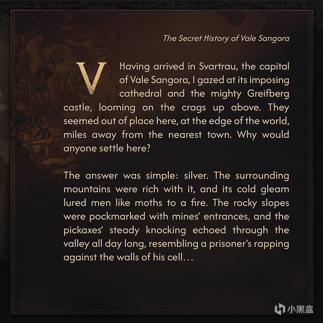 抵達Vale Sangora的首府Svartrau後,我凝視着雄偉的大教堂和聳立在峭壁上的宏偉的Greifberg城堡。它們似乎與這裏格格不入——這裏位於世界的邊緣,距離最近的城鎮有數英里之遙。爲什麼有人會在這裏定居?