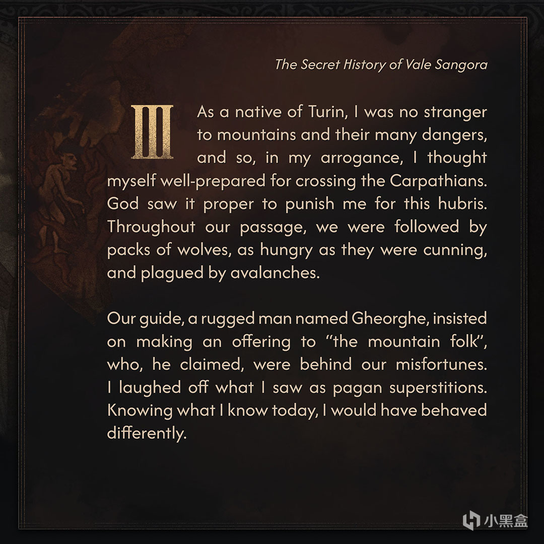 我們的導遊名叫Gheorghe,是個粗獷的男人,他堅持要向“山民”獻祭,他聲稱我們的不幸是山民造成的。我嘲笑這些我眼中是異教徒迷信的說法。要是知道今天所知道的事情,我肯定會做出不同的行爲。