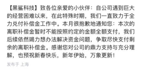 果不其然,随后黑鲨曝出丑闻:黑鲨被爆拖欠员工离职补偿金。
