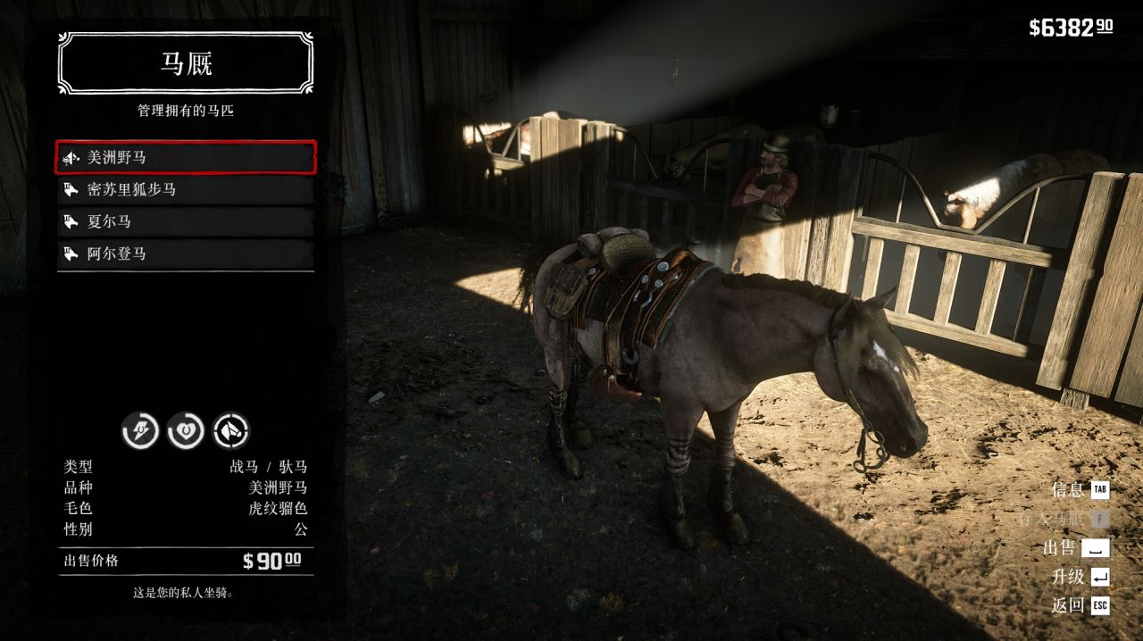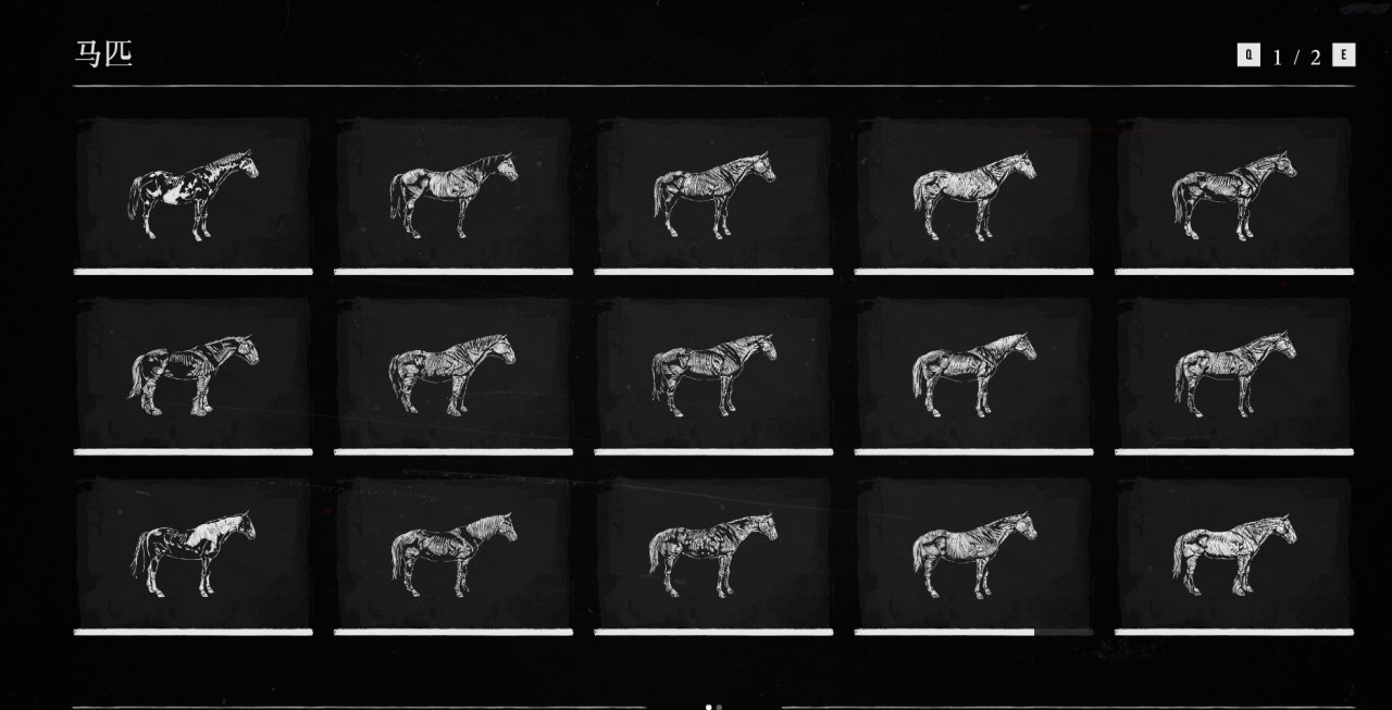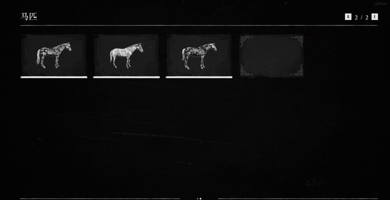 马厩存的4匹如下,临时马为黑色阿拉伯。其他18种解锁的马都骑到4级默契,每种花色也都骑过。