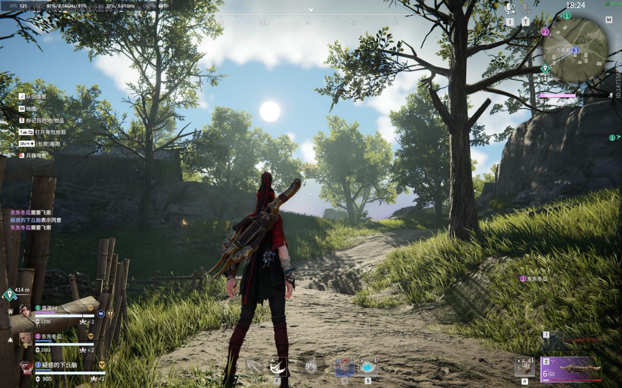 三排2k分辨率全最高畫質下(這個由於本人沒玩過就簡單測試了下,實測打鬥和跑圖幀率變化幅度不大)