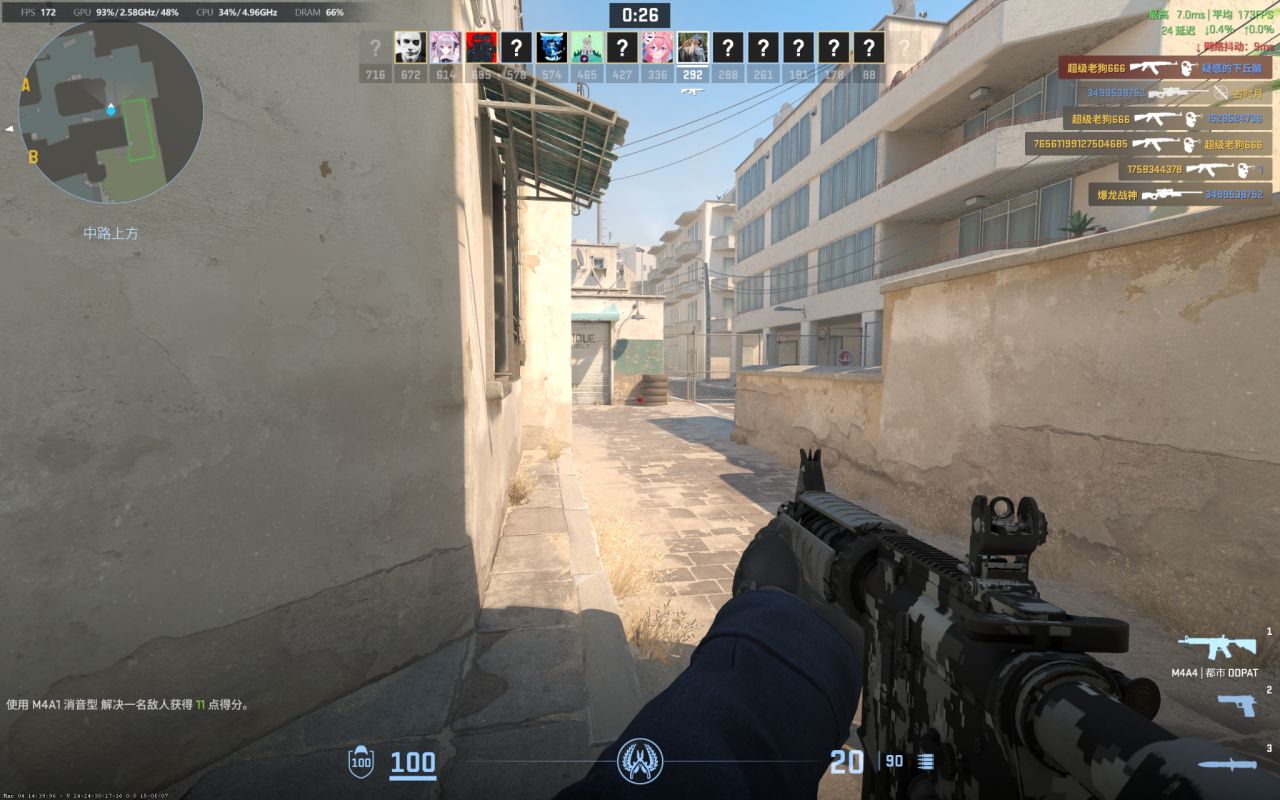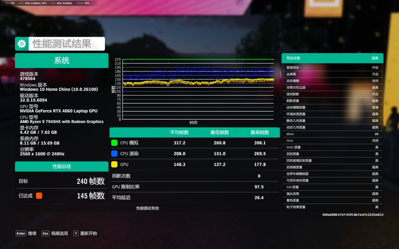 2k分辨率全最高畫質下 (對槍在100幀左右)
