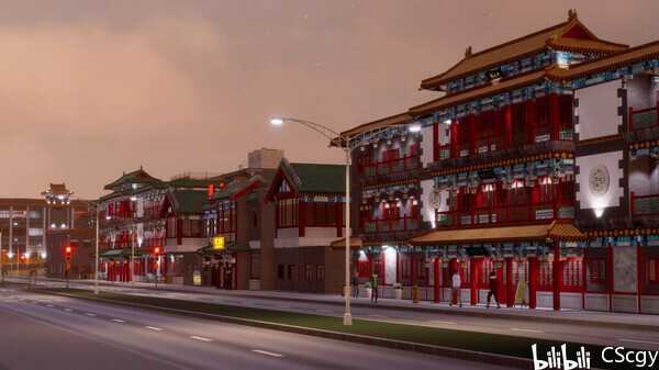 首先是中國風格的傳統建築內容創作者包“龍騰街區”,它允許您創建一個充滿活力的中國風格市場區。讓市民漫步在裝飾着燈籠和商店招牌等經典元素的購物街上。