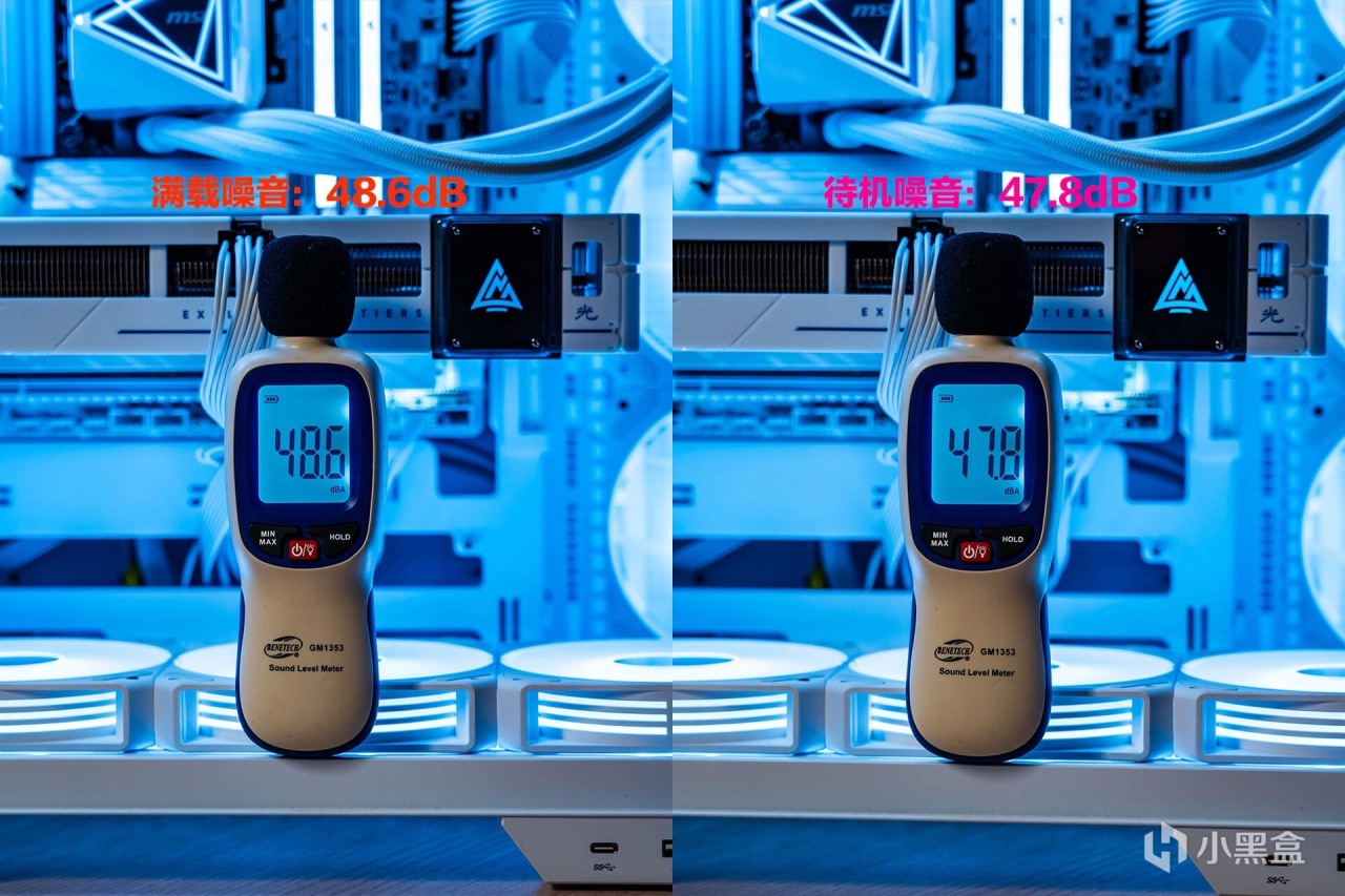 藍戟B570 Photon的風扇支持智能啓停功能,桌面待機時轉速爲0,噪音47.8dB;顯卡滿載時風扇轉速1200轉,噪音48.6dB。可以說,這一代銳炫B系列顯卡的噪音控制灰常牛X。