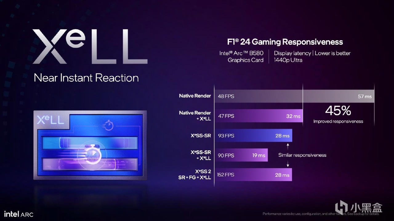 下圖是英特爾官方給出的《F1 24》遊戲測試數據,顯卡是Intel Arc B580。