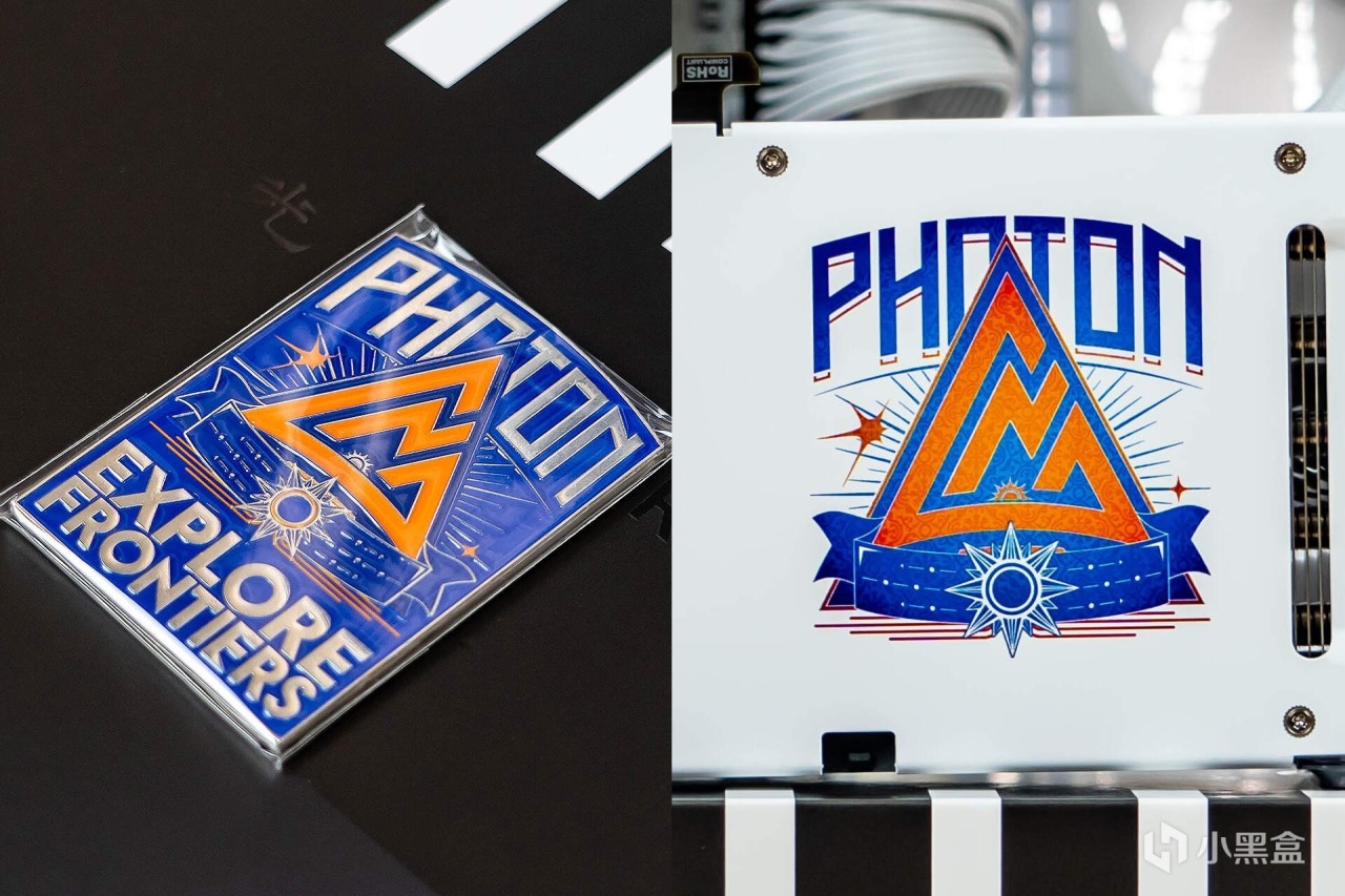 打開包裝第一眼看到的是一枚非常漂亮的藍戟Photon系列專屬磁吸徽章,與顯卡背面的圖案遙相呼應,開箱儀式感拉滿。