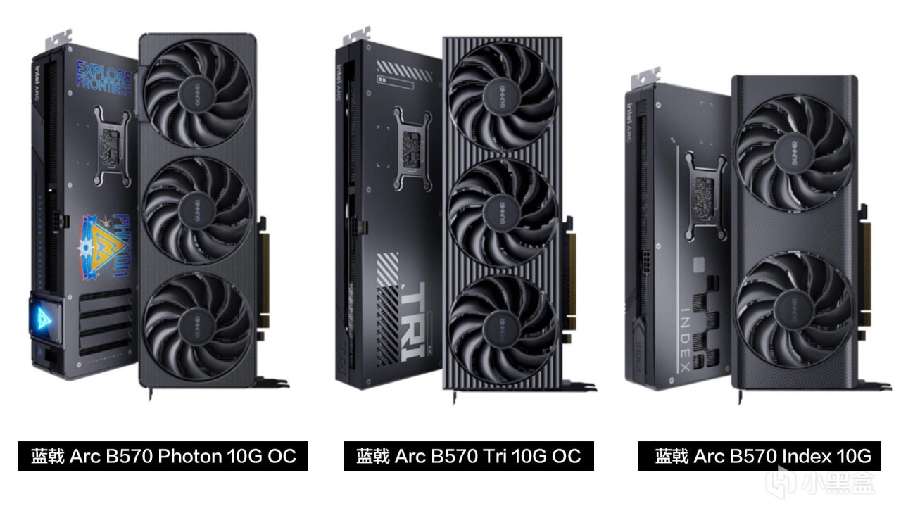 值得一提的是,英特爾沒有發佈Arc B570的公版顯卡,而是直接與廠商合作推出了非公版,其中最受關注的品牌就是GUNNIR藍戟。作爲英特爾入局GPU領域後在中國大陸的首家核心合作伙伴,藍戟誠意滿滿的推出了Photon,Tri和Index三個版本Arc 570,和藍戟Arc B580如出一轍。