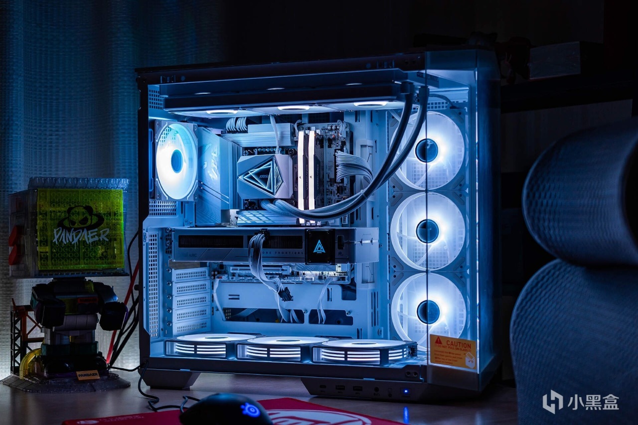 有一說一,白色主題的藍戟B570 Photon上機效果實在太讚了!之前裝的這臺白色海景房沒找到調性一致的白色顯卡,一直是我的心結。換上藍戟B570 Photon後瞬間與我的主機融爲了一體,有光無光都能輕鬆駕馭。