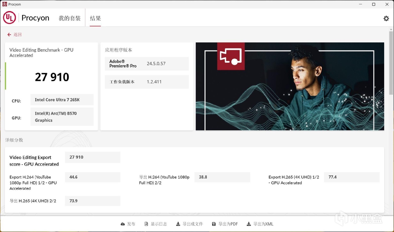 這裏測試的生產力工具是大家平時常用的Adobe軟件(Ps+Pr+Lr),爲了保證數據客觀性,我依然使用UL Procyon對這幾款Adobe軟件進行更專業的性能測試,通過最後的分數量化電腦在執行編輯、導出任務時速度。