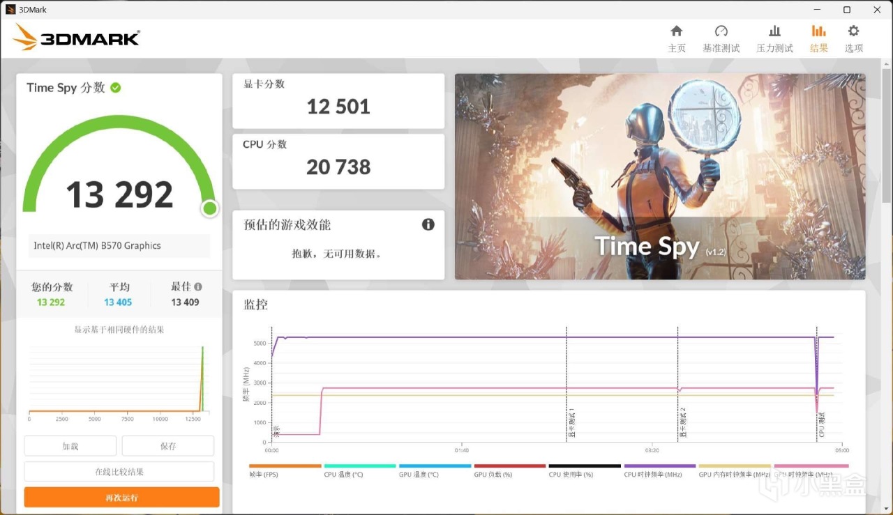 2K分辨率 DirectX 12 遊戲的基準測試Time Spy,藍戟B570 Photon綜合測試結果13292分,顯卡得分12501分。