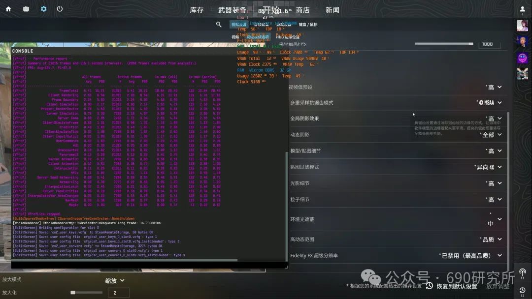 CS2 高畫質預設 2K分辨率下,13900HK+B580的平均幀爲194.7,low幀爲97.9,壓力略大,還是需要降低些畫質,不過話說也沒什麼玩家會高畫質預設下跑CS2。