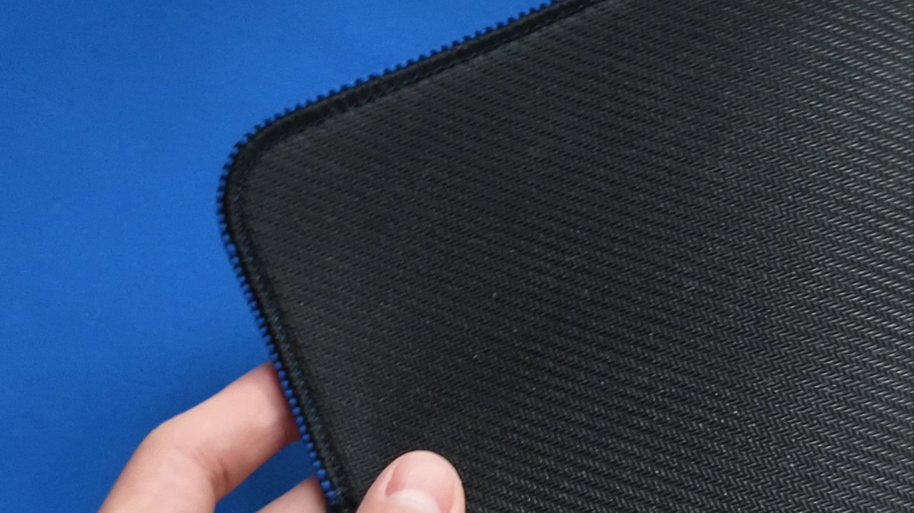 包邊上兩者經過測量也只有3mm,較爲精美,低密窄緊,整齊細緻,並沒有什麼毛邊的出現。並且包邊採用了下陷式鎖邊處理,略低於鼠標表面,所以如果你經常需要大幅度的拉槍,導致手時不時劃出邊界也沒啥,整體體驗挺舒適的