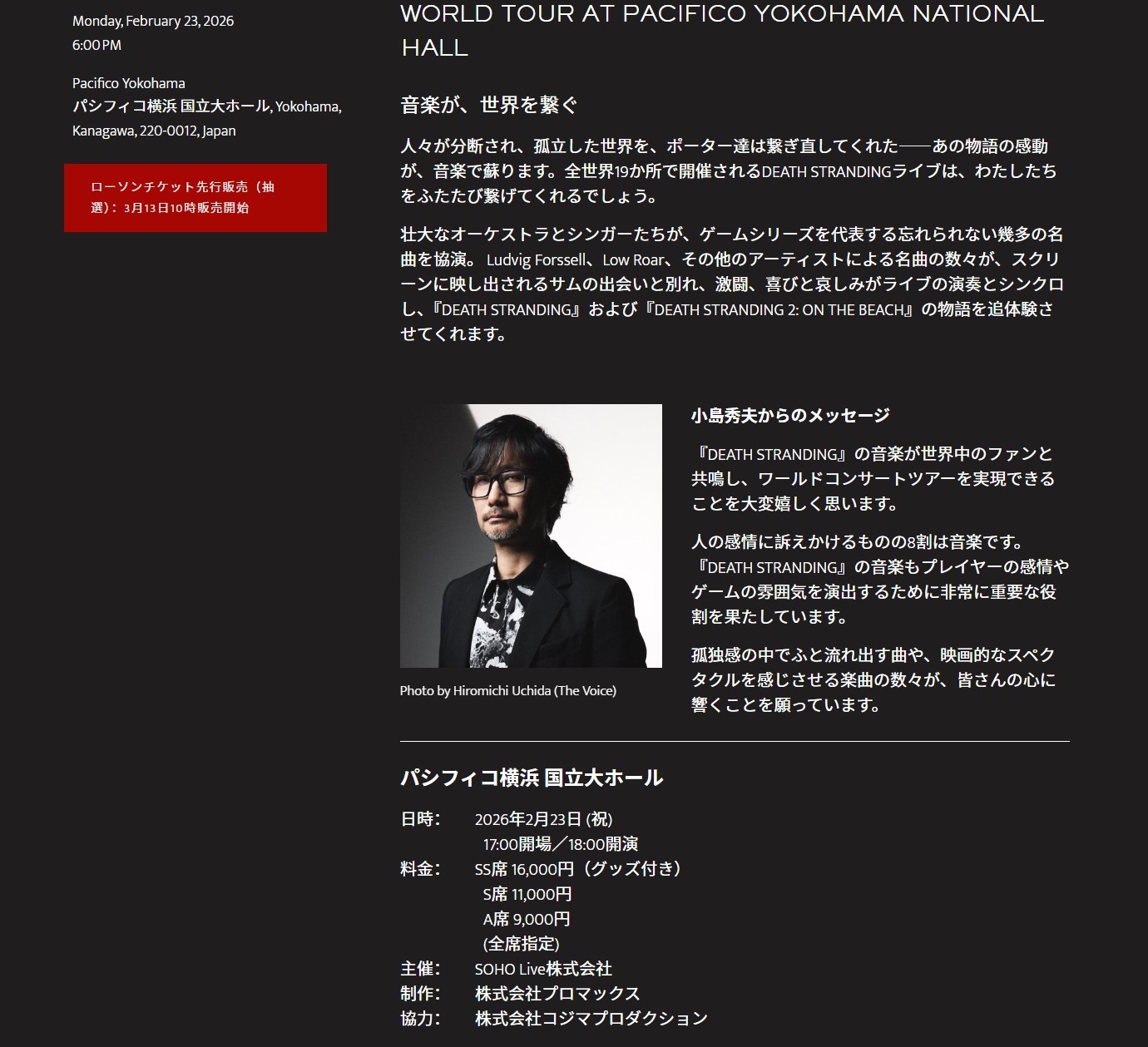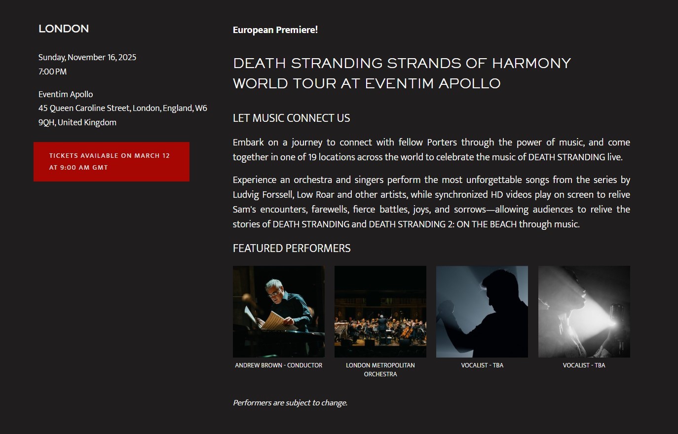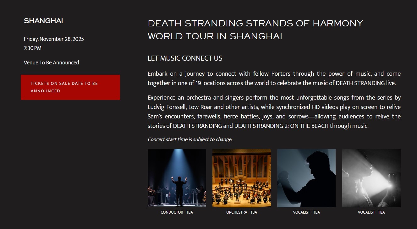 今日,《死亡搁浅》交响音乐会全球巡演开启公开售票。
