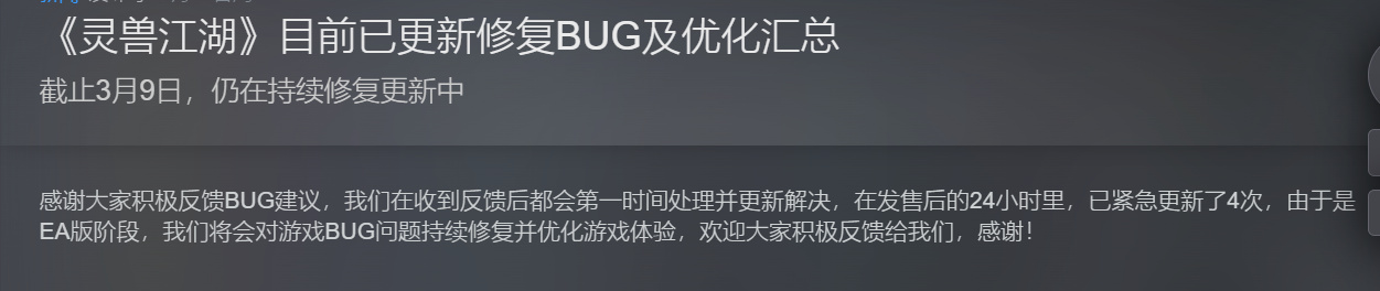 刀剑江湖路刚发售一度让很多玩家失望,毕竟和宣传时候相比确实差距相当大,不过还好,游戏更新的速度还不错,一步步在完成之前的更新计划。如果能接受ea的话,其实也并不算差。