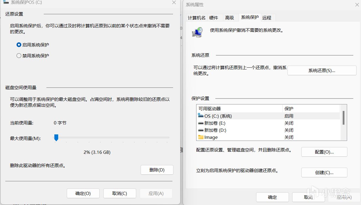 點擊 “配置”,選擇 “刪除” 舊還原點(保留最新的1-2個即可)。
