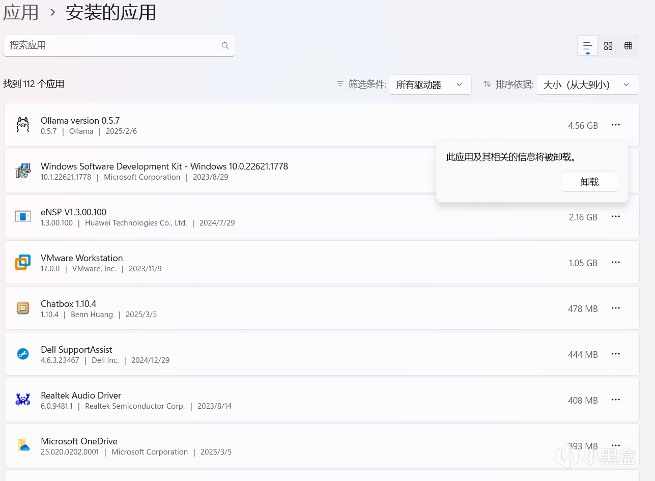 路徑:設置 > 應用 > 已安裝的應用,排序按佔用空間,卸載不再使用的程序。