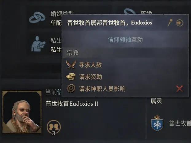 我們還爲特定情境添加快速互動按鈕,包含與該情景相關的互動的一攬子集合,譬如宗教領袖、行政制領主或行政制總督各自的界面。模組作者可輕鬆創建此類自定義情境。
