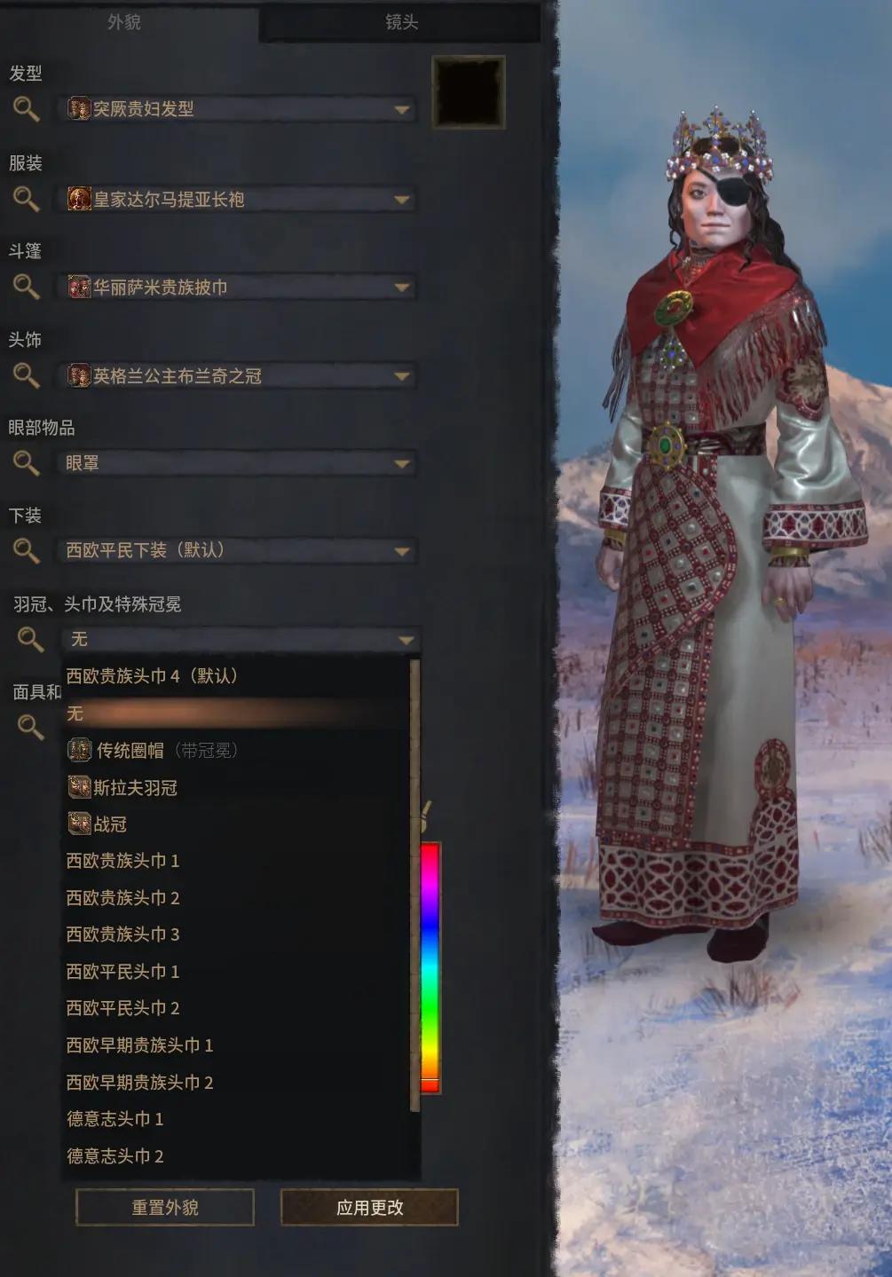 角色編輯器新增分類並重組項目,提升自定義自由度。開放此前鎖定的拜占庭/耆那教服飾,允許自由調整眼部裝飾、面部飾品、紋章、面紗與特殊王冠。