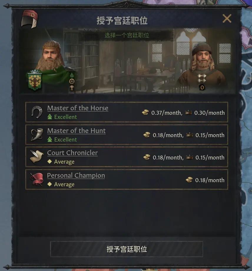 玩家也可以通過新增的角色互動選項直接授予職位,便於通過儀式性職位安撫不滿封臣。