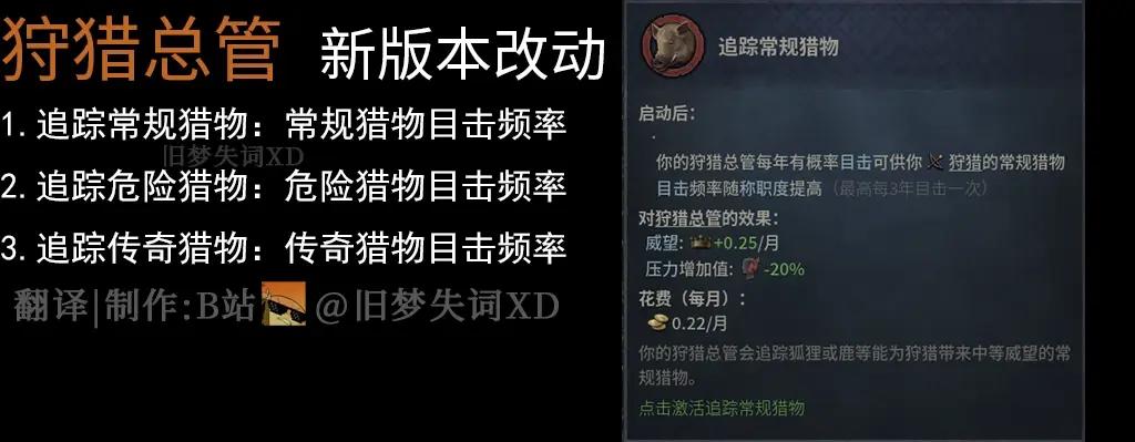 藉此機會,我們將整個狩獵目擊機制整合進了宮廷職位任務體系。若想通過目擊事件提升狩獵成功率,現可指定狩獵總管專注搜尋目標物種,使系統更具策略性而非隨機觸發。