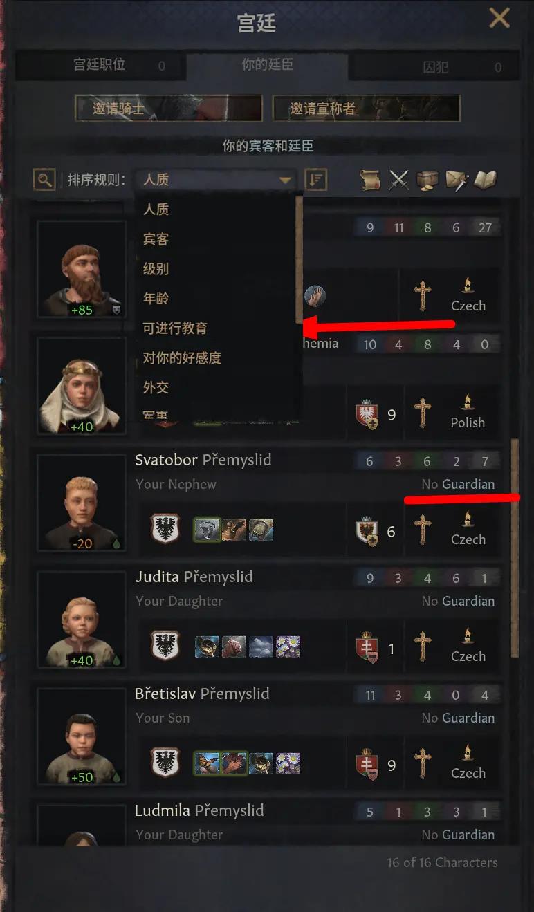 現在有新的指示文本和過濾選項,可用於查找宮廷中沒有監護人的兒童。這在右側宮廷窗口和角色視圖中都有顯示。
