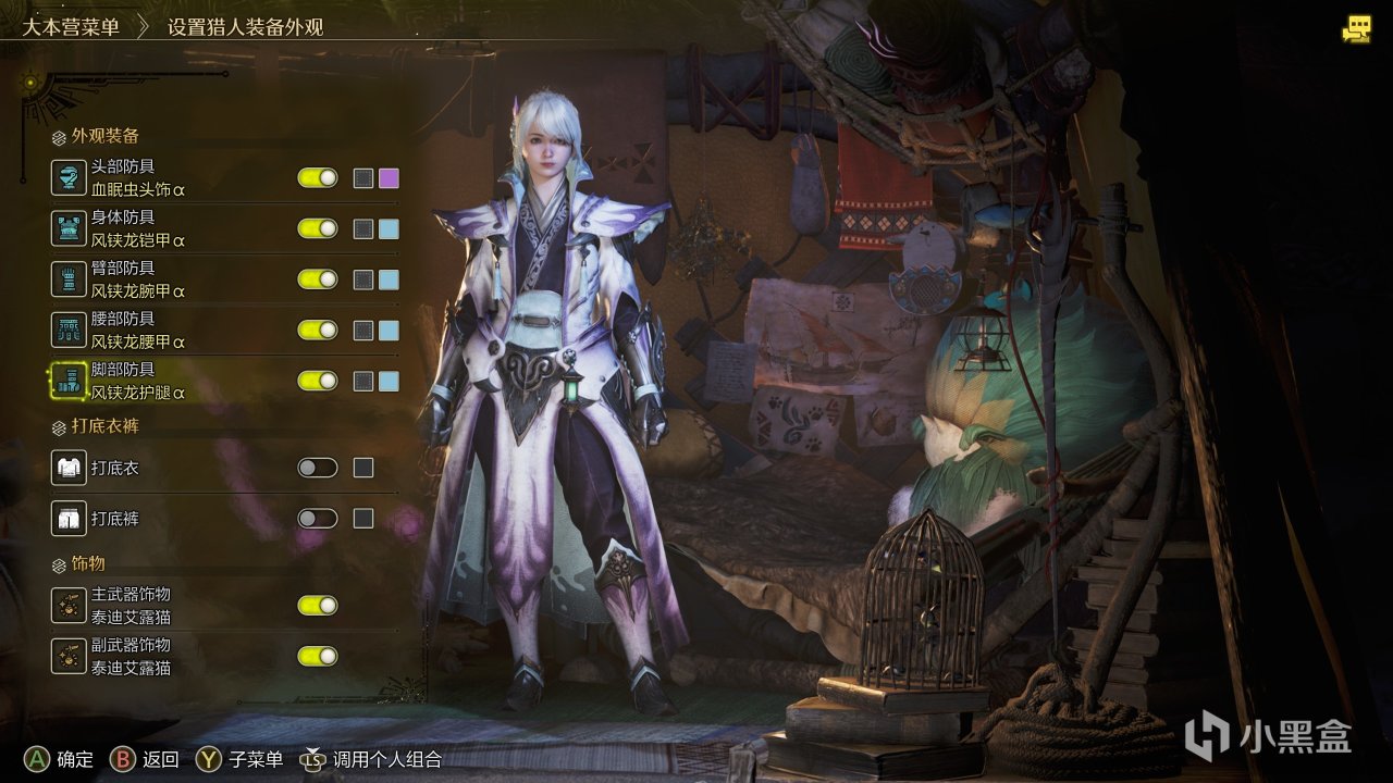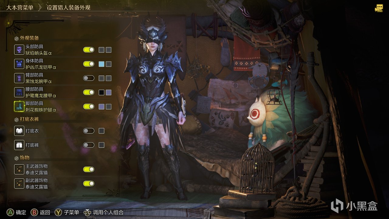狱焰鞘这个头真好看,本来还说自身那套铠甲带个披风还是很帅的,但是胸前的触手看起来不舒服,改成相对协调的护凶爪龙铠甲。另外护鹭鹰龙裙和刺花腿这两个好看的单件别浪费了。