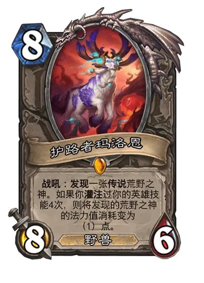 艾维娜,艾露恩钦选者:战吼:开启为期三回合的月相演变。当满月升起时,在本局对战中你的卡牌法力值消耗为1点