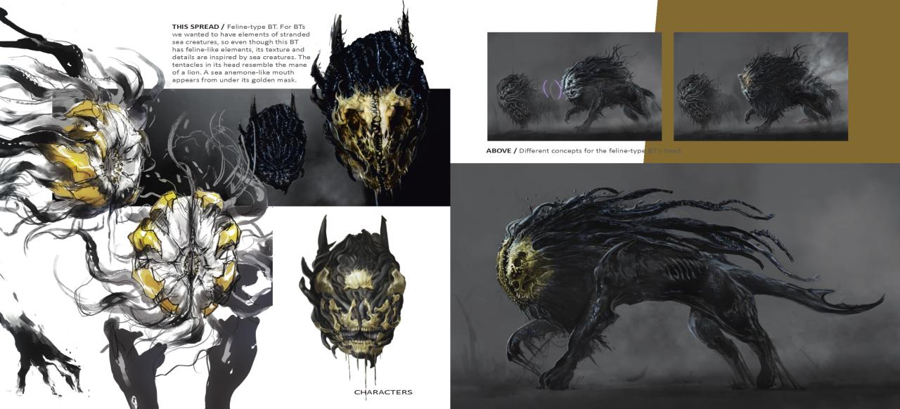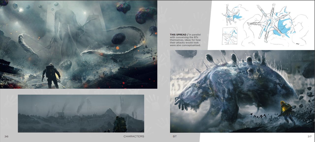 巨像型 BT 的最終概念設計。其臍帶比其他 BT 的更爲顯眼。在遊戲中,BT 可利用臍帶吸收焦油