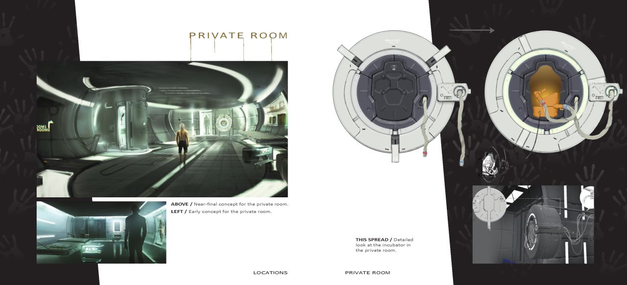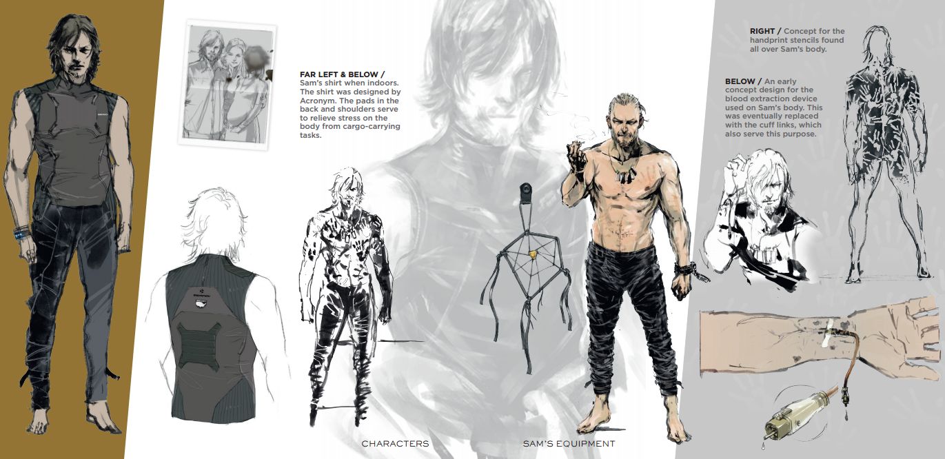 早期爲山姆身體使用的血液抽取裝置設計的概念圖。最終它被銬環取代,袖釦也具有這一功能。