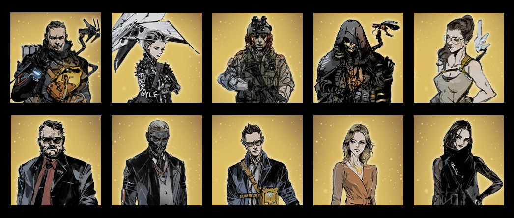 左側:山姆•布里吉斯、山姆的裝備、亞美莉、“硬漢”,“亡人”,“心人”,瑪瑪,芙拉吉爾,希格斯,克羅福德,二戰士兵,BT