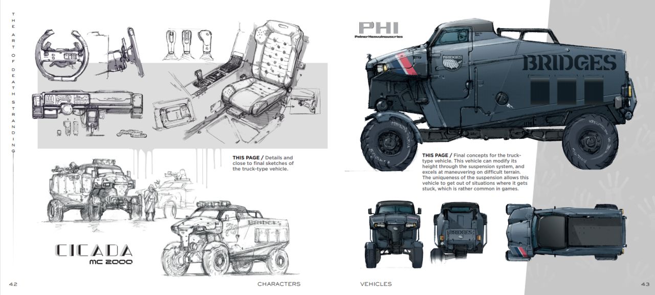 卡車型載具的最終概念設計。該載具可通過懸掛系統調節車身高度,擅於在複雜地形上行駛。懸掛的特殊性使其能擺脫遊戲中常見的困車困境