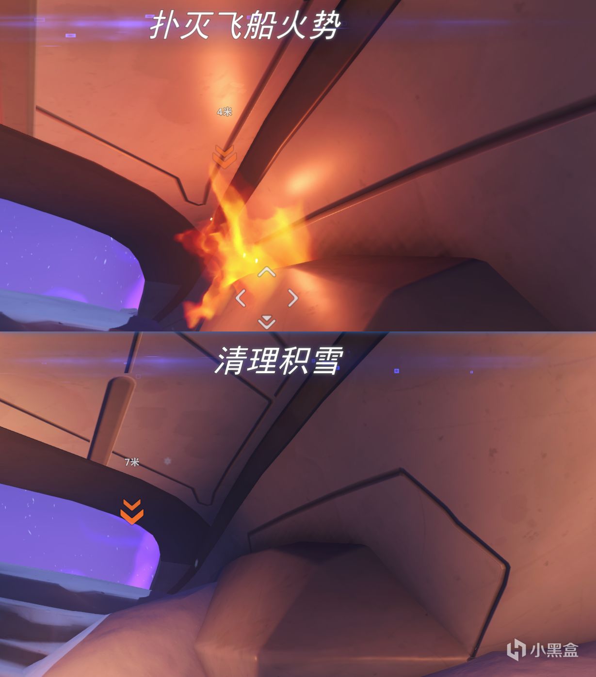 3.開局第一個任務就在飛船旁邊,記得回頭,使用互動鍵“F”靠近撲滅火勢或者清理積雪