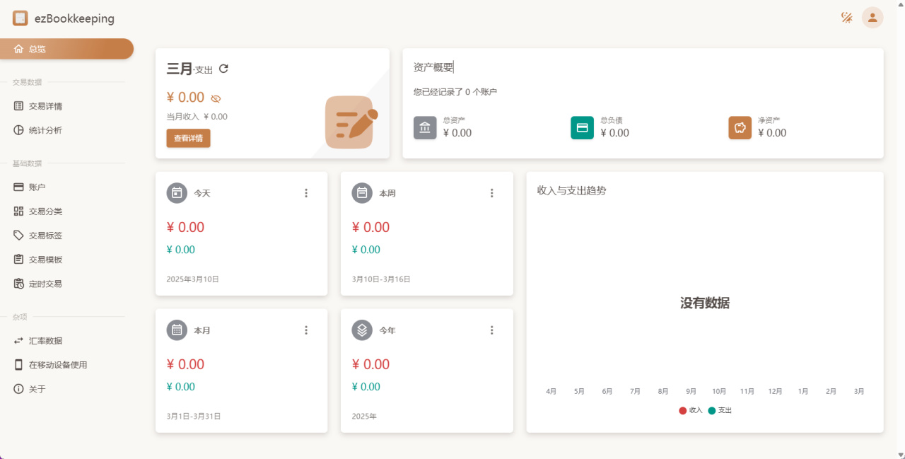 项目其实已经存在蛮久了,不过能看到项目Star人数并不多,但这么好的项目熊猫必须要让大家知道,同时也是自己体验过发现的确是好用,所以今天介绍给大家。(项目地址:https://github.com/mayswind/ezbookkeeping)