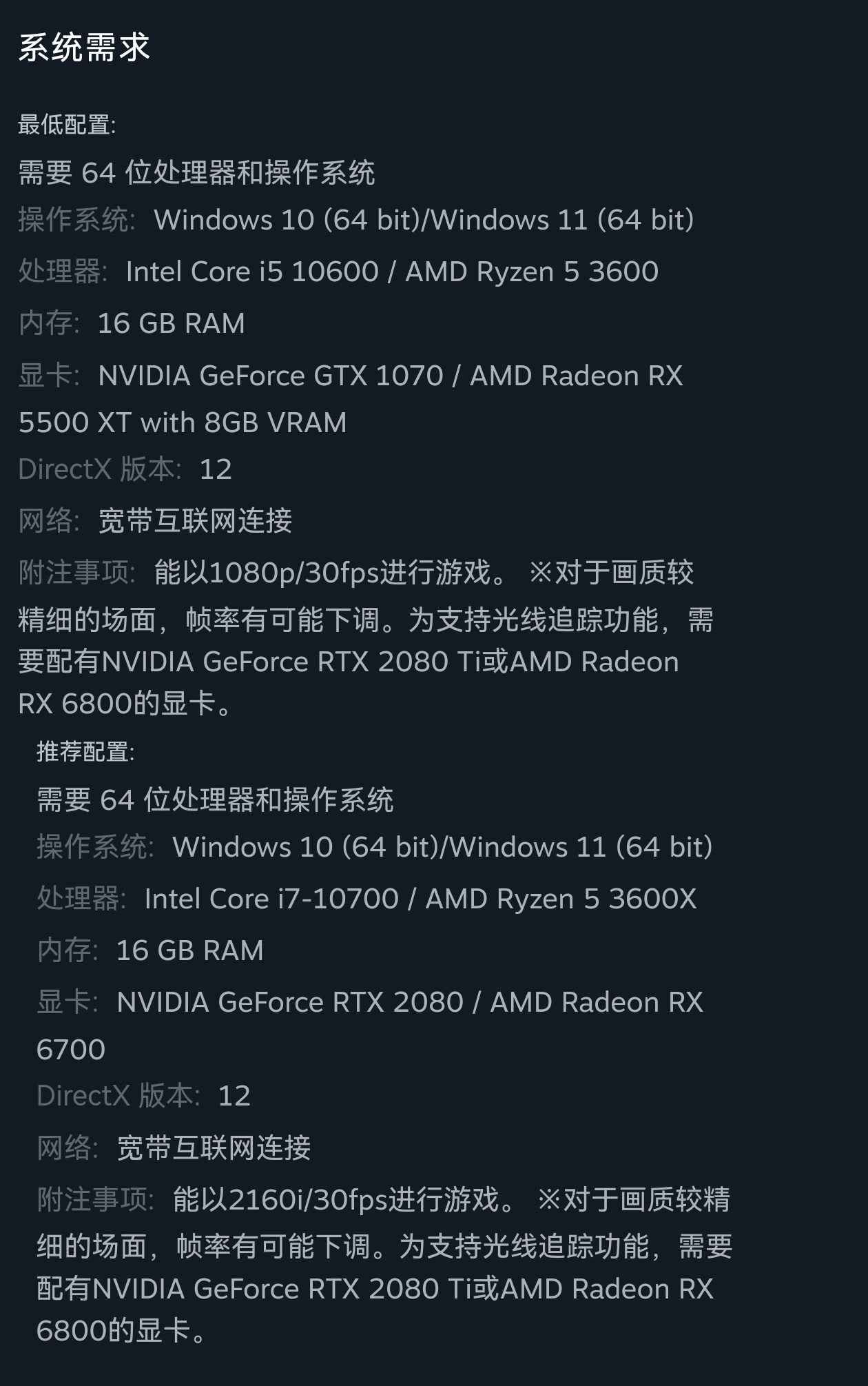 游戏配置要求: