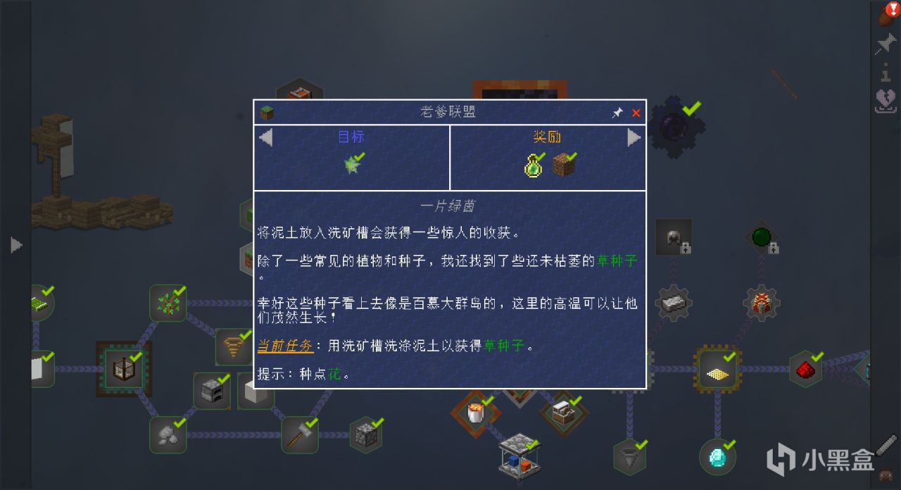 海洋方块2的任务做得很详细,也相当于一个教程,所以跟着教程走是对新手来说最好的选择。今天的目标已经定下了,所以进去之后首先看的就是任务书,确认今天的任务。