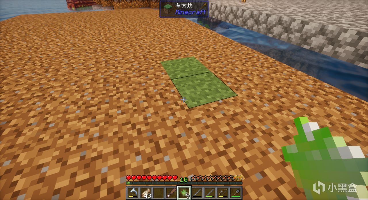 既然要跟进任务,那么现有的扩展的岛屿面积已经明显不够用了,所以我想先扩展岛屿。但是一直使用圆石台阶也不太好看,所以我选择用“泥土”结合“草种子”种出草方块,接下来就能在岛屿上看到草坪了,同时也能完成一个任务。