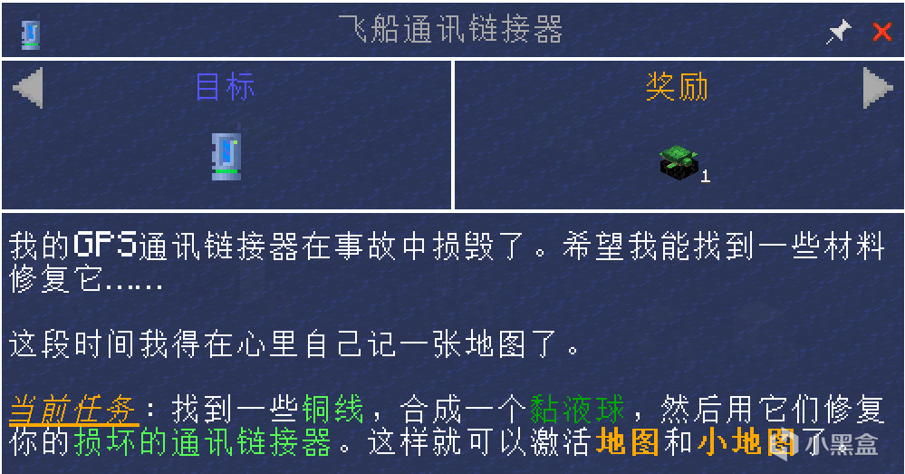 将“损坏的飞船通讯链接器”修复后可以使用小地图了。