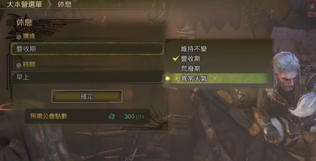 採集效率還與天氣有關。如果選擇休息並改爲豐收期,採集效率會更快;但如果遇到沙塵暴等極端天氣,NPC不會外出採集素材,此時委託素材的界面會變成不可指定狀態。