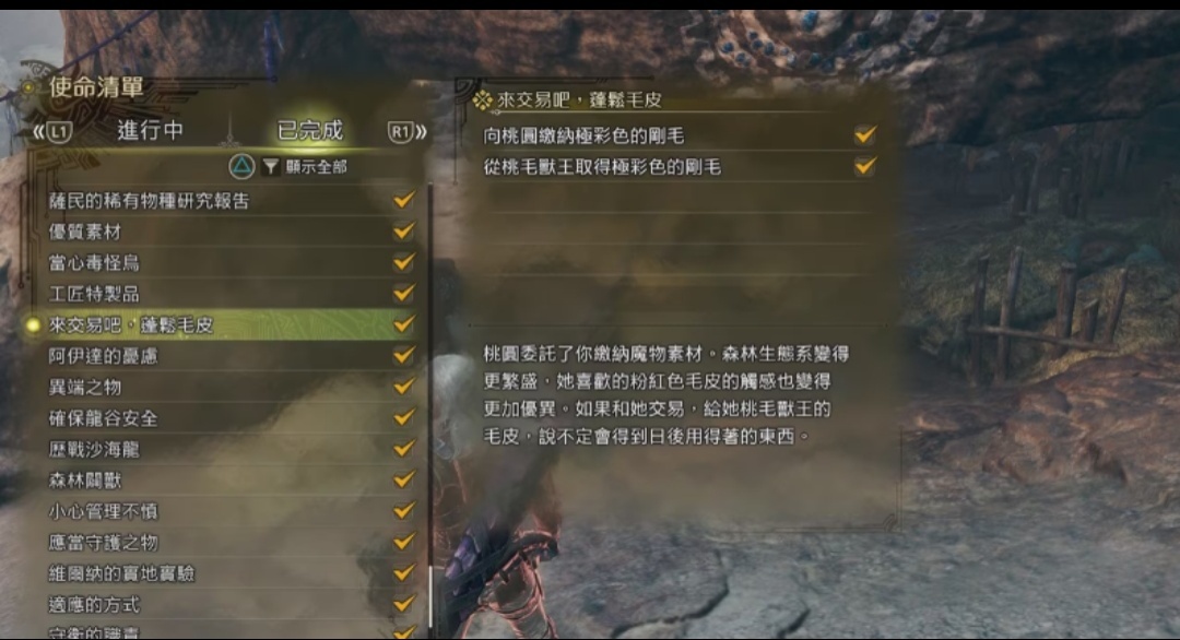 隨着主線的推進,狩獵完上位的黑蝕龍後,這些素材採集委託的NPC會有新的支線任務可以接取。任務內容通常是狩獵兩隻怪物,完成後不僅可以提升採集效率,還能增加可採集的素材種類。