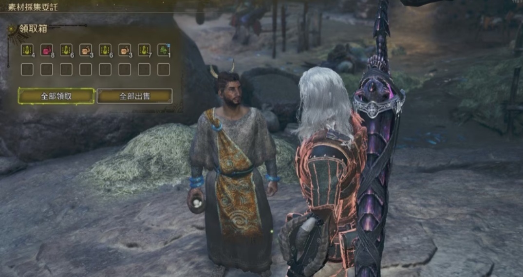 狩獵完成後,回去找阿伊達回報任務,接着與薩巴爾對話,即可解鎖薩巴爾的素材管理委託。