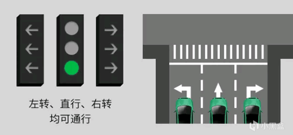 右转:看右侧的箭头灯,红灯停,绿灯或不亮都可以走。