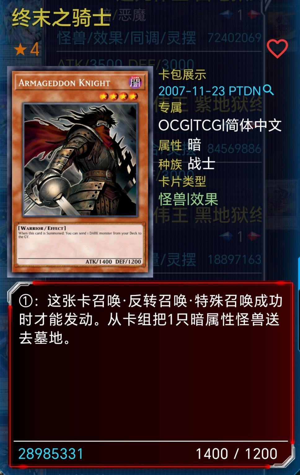 🎴② 怪兽的诱发效果(例:终末之骑士)